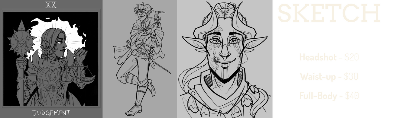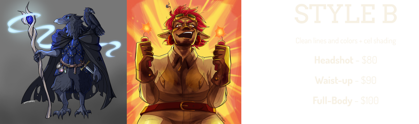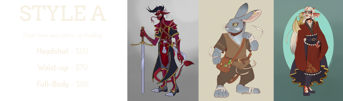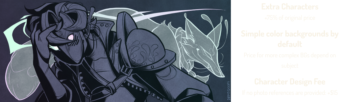 Hiya! You found my commission page! Prices are listed below. Please read through the Info / Policies section before reaching out, thanks!I do not draw: